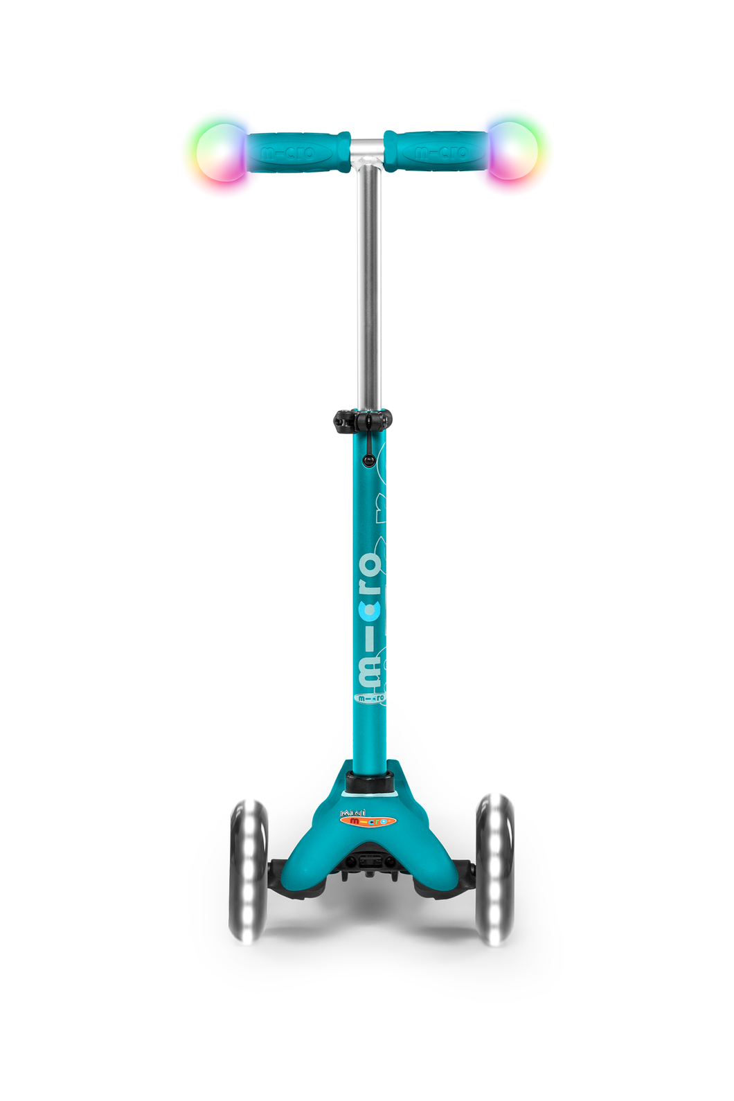 • Light up and ride! The newly upgraded Mini Deluxe Magic scooter offers a little bit of glow, and a whole lot of fun. As soon as your child touches the handlebar of the Mini Deluxe Magic, the integrated touch sensor makes the LED lights on the handlebar shine in 5 different colors. This not only increases the fun factor, but also the safety factor in dim-light areas. Motion-activated LED light up front wheels also glow and they go!