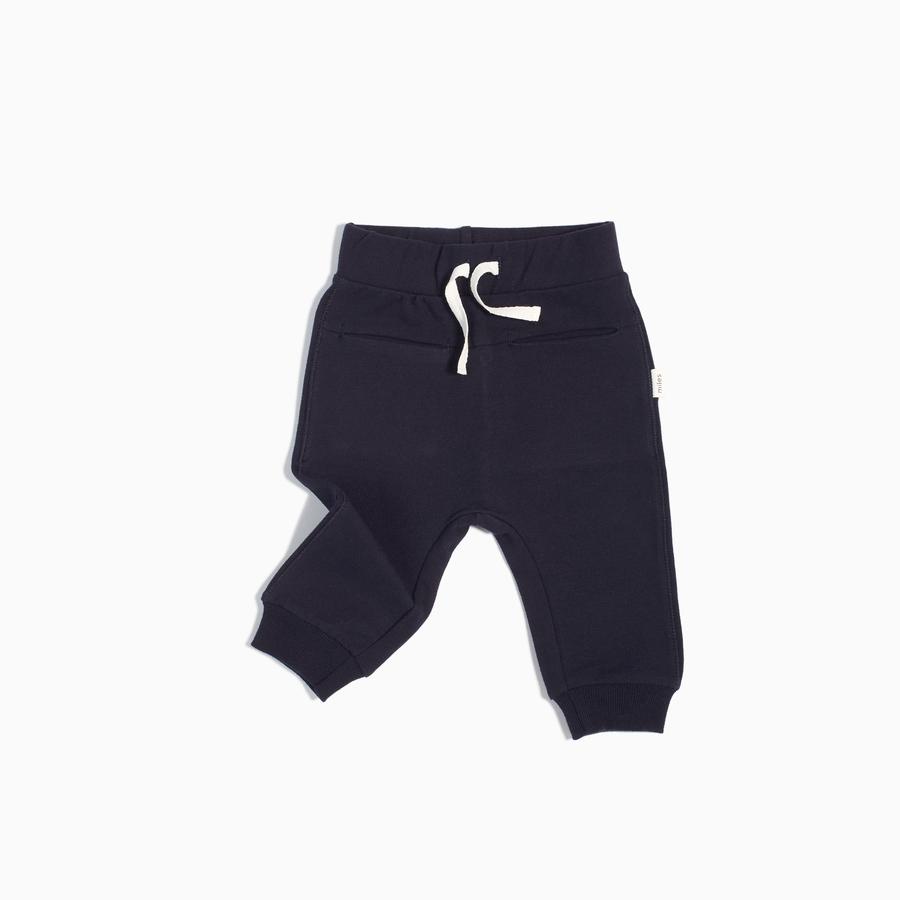 This Miles Basics Jogger in Solid Navy is the cornerstone style of your kid's wardrobe. Made of a breathable and lightweight french terry. We added some spandex to the super soft organically grown cotton for added stretch and greater freedom of movement. Crawl, wash, roll, wash, play, wash, jump and wash these durable joggers. Mix and Miles with your favorite tops for endless outfit possibilities.